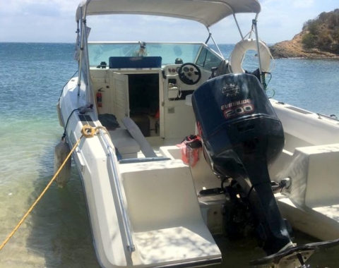 Barco 24 pies, motor fuera de bordo 200 Evinrude, transmicion nueva, pintura nueva, radio VHF, extintores, ancla, porta bara, toldo... Muy buen barco con su cabina cómoda. 16000 USD negociable, hacer OFERTA.... sacrificado!!! Ese barco esta RENOVADO ENTERO y VALE MAS DE 22 Mill dolares....